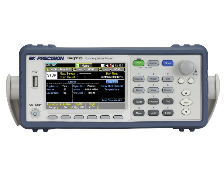 Introducing B&K Precision’s DAQ3120 Benchtop Data Acquisition System – a versatile solution that combines advanced technology with compact design. This system features a three-slot mainframe with a built-in 6-½ digit multi-meter and an efficient data logger.
