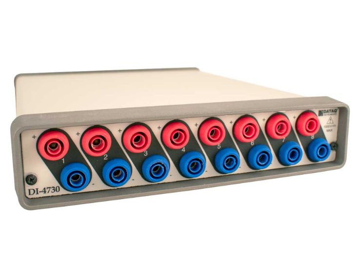 The DI-4730 High-Voltage High-Speed Data Logger from DATAQ is the next-generation of the popular DI-730 series data logger. This latest model includes the option of channel expansion, and stand-alone capability using a removable USB flash drive (unlock code required).